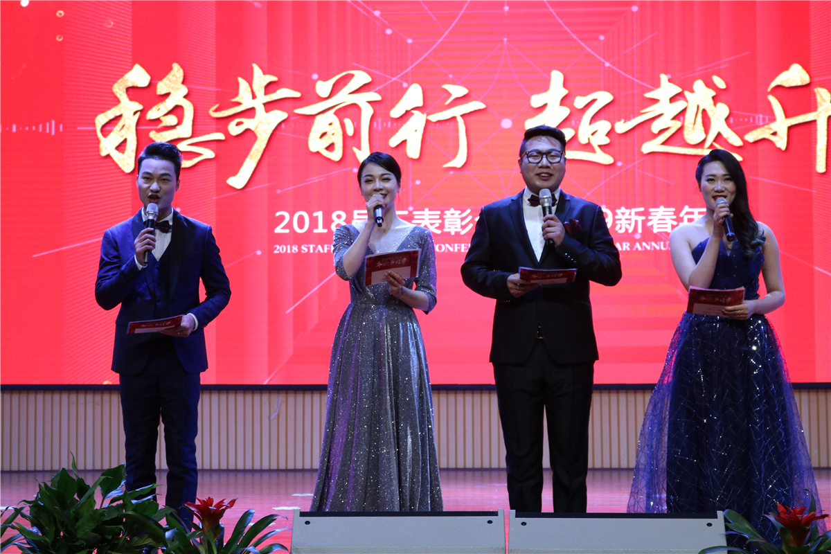 優美的開場舞過后,四位主持人登臺,開啟了新春晚會的篇章。