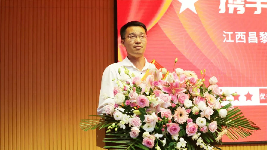 ▲宜春昌黎實驗學校優秀教師代表何斌發言