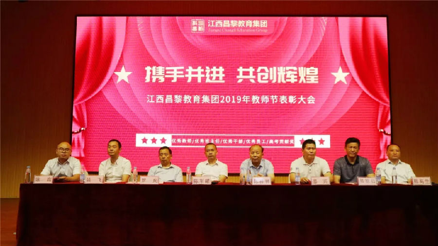 9月8日的宜春昌黎藝術中心環繞在一片溫馨美好的氣氛中,在第三十五個教師節來臨之際,昌黎教育集團2019年教師節表彰大會在此舉行。三陸康集團董事長陳祥林,三陸康集團總裁、江西昌黎教育集團董事長陳軍耀,經開區社會事業管理局辦公室主任徐竹根,三陸康集團副總經理易德啟,昌黎教育集團副總經理羅兵,昌黎教育集團副總經理、宜春昌黎實驗學校校長熊高生,昌黎教育集團副總經理姚飛以及來自四大板塊教職員工出席大會,三陸康集團總裁助理陳高主持會議。