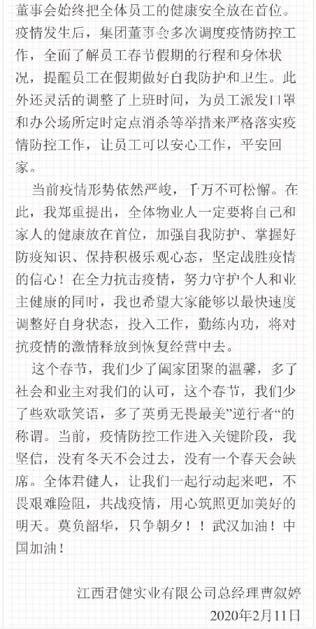 我們君健物業人,不辭辛苦,放棄假期,只為居民健康!天佑中華,共戰疫情!加油!