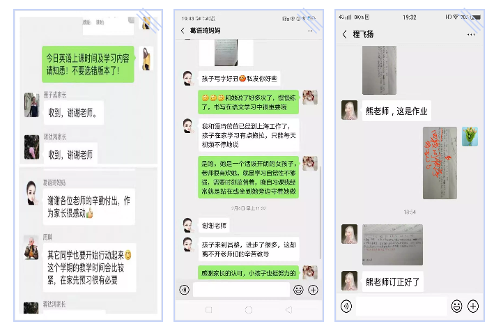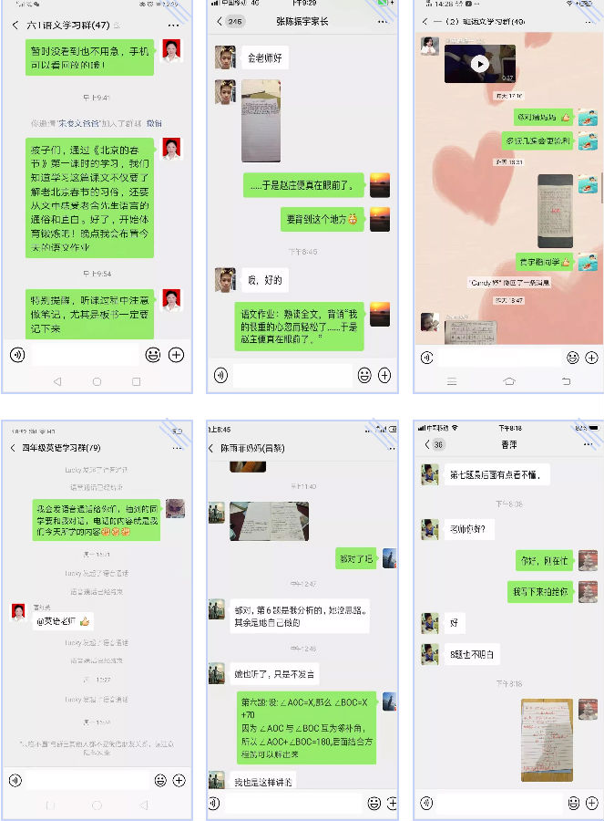 課程有研、有講還有糾,老師們通過微信群、QQ群,釘釘?shù)确绞讲贾米鳂I(yè)并批改,讓學(xué)生在不僅學(xué)還能練!同學(xué)們在家長的陪伴下 ,完成了視頻學(xué)習(xí),線上作業(yè)和查看教師批閱情況反饋。從目前來看,這種學(xué)習(xí)方式在同心抗疫的大背景下無疑是最有效。 家長對于學(xué)校的工作安排不僅理解,更是十分的配合與支持!