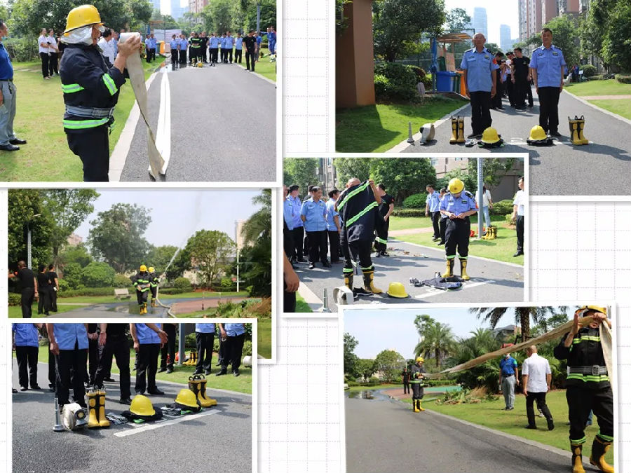 ▲來自君健物業各小區的安保人員正在比拼消防滅火護具穿戴與滅火步驟。