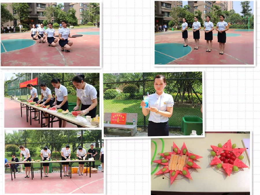▲案場客服人員展示形像禮儀、水果拼盤、飲品調制等技能