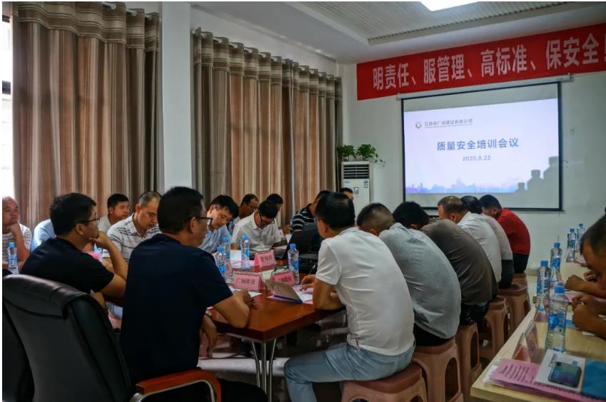 金秋時節,丹桂飄香。8月22日,江西省萬焱建設有限公司召開了2020年工程建設質量安全培訓會議。會議由公司行政人事負責人陳彥龍主持召開,董事長敖小平、總經理助理彭怡磊以及公司高管、相關職能部門管理人員,各項目質量安全管理負責人等共計三十余人參加了此次培訓會議。