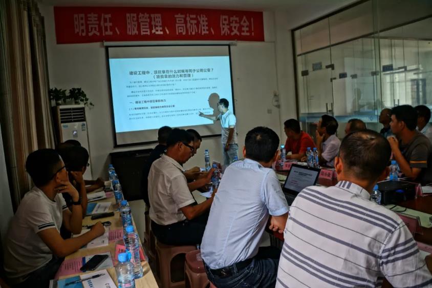 公司行政人事部負責人陳彥龍對建設工程中,項目章在什么時候等同于公司公章,項目章的效力和管理進行了培訓講解。